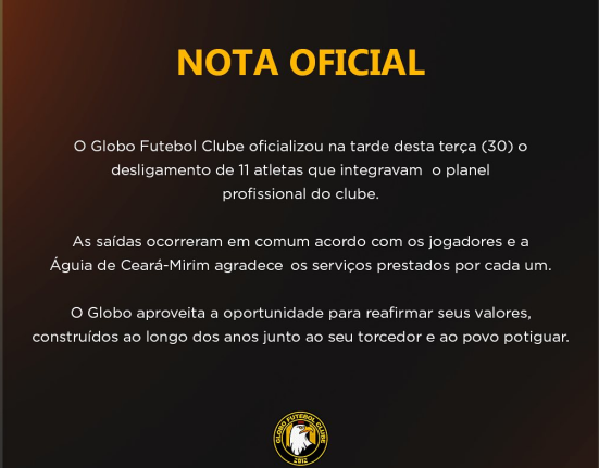 Tudo no Globo é cercado de mistério e nenhuma informação. A Águia dispensou onze jogadores, mas não anunciou nenhum nome. Apurei alguns, que