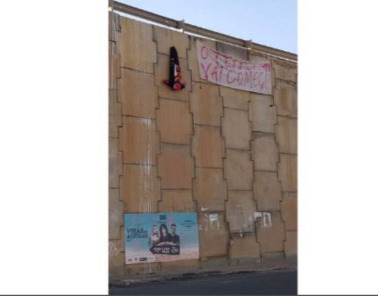 Na manhã desta quarta-feira (17) foi identificado no viaduto do Nova Betânia, em Mossoró, um boneco e uma faixa com a frase “O