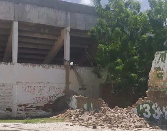 O jornalista Fábio Oliveira, do Portal F9 me alertou sobre o muro do estádio Nogueirão, relatando que o murou que desabou não tem